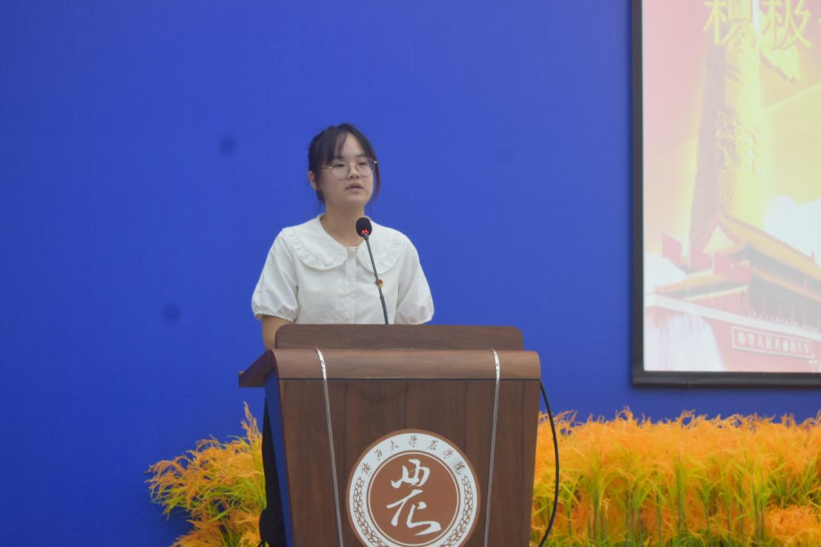 农学22本科生赵昕雨同学作为学员代表上台发言她表示作为一名新时代青年,要不断加强理论学习,坚定理想信念,补足精神之钙,增强纪律意识,时刻严格要求自己,发挥模范带头作用,积极参加实践锻炼,增强实践能力,用实际行动展现能力与担当。