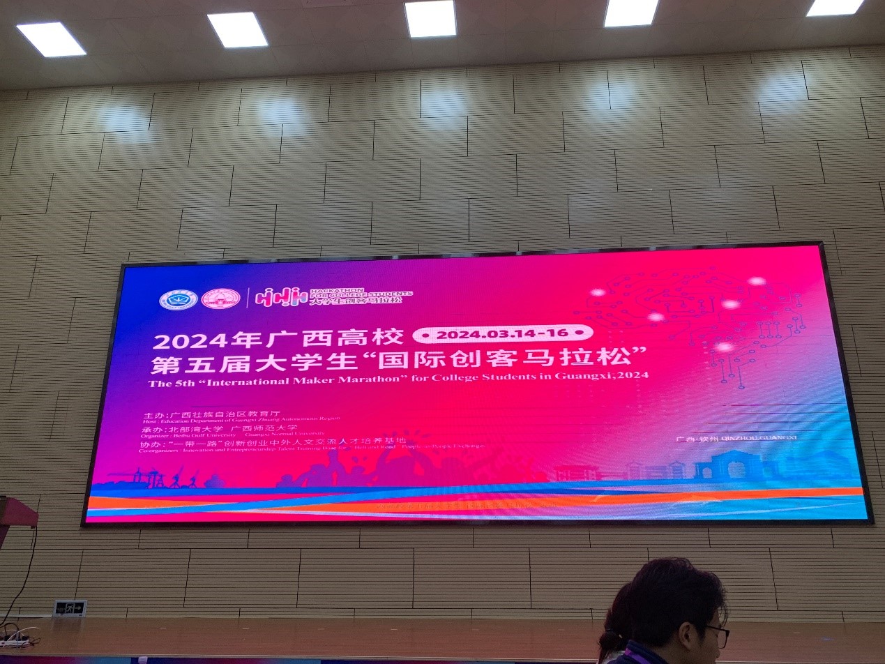 2024年3月14日—3月16日,2024年广西高校第五届大学生“国际创客马拉松”活动在广西钦州市北部湾大学成功举办。本次活动共吸引来自全区共61所高校,161名师生参与,其中包含本科生、研究生还有来自泰国、马来西亚、老挝、柬埔寨、刚果民主共和国、缅甸等8个国家21名留学生同学们。
