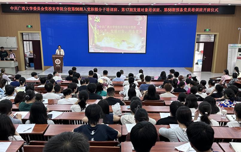 5月8日晚,我院在124报告厅举办广西大学党校beats365亚洲版分校第56期入党积极分子培训班、第17期发展对象培训班、第58期预备党员培训班开班仪式。院党委书记袁涛、专职组织员、学生党支部书记、辅导员以及本次培训班全体学员参加开班仪式。学院团委书记李诺主持开班仪式。