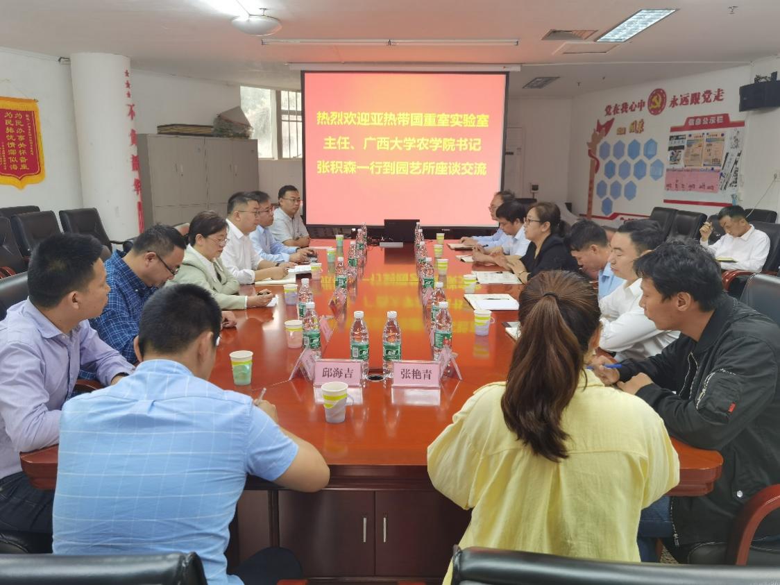 为加强院所间科研组织化合作,推动学科建设和发展,3月27日,beats365亚洲版党委书记、亚热带农业生物资源保护与利用国家重点实验室(以下简称“国重室”)主任张积森带队到广西农业科学院园艺研究所进行合作交流,并与广西农业科学院园艺研究所所长李鸿莉等座谈。