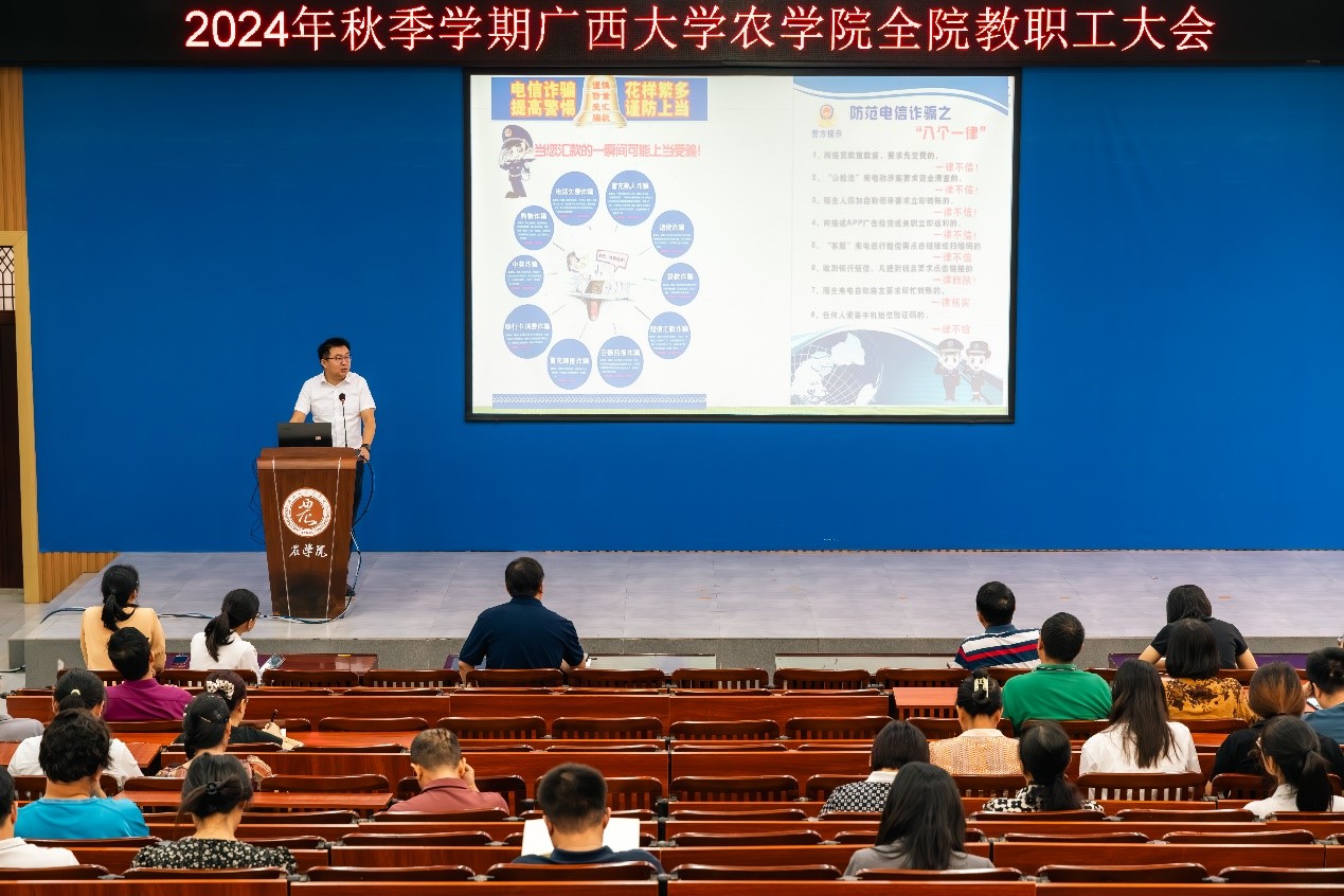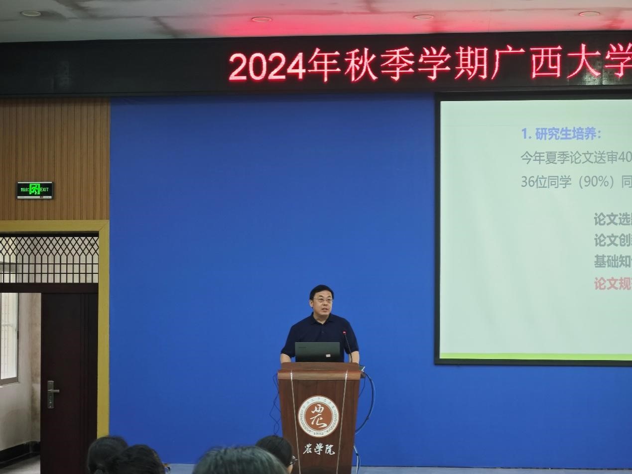 9月24日上午,我院在124教室召开2024年秋季学期全院教职工大会,安排部署本学期重点工作,学院党政领导班子成员及全体教职工参加会议。