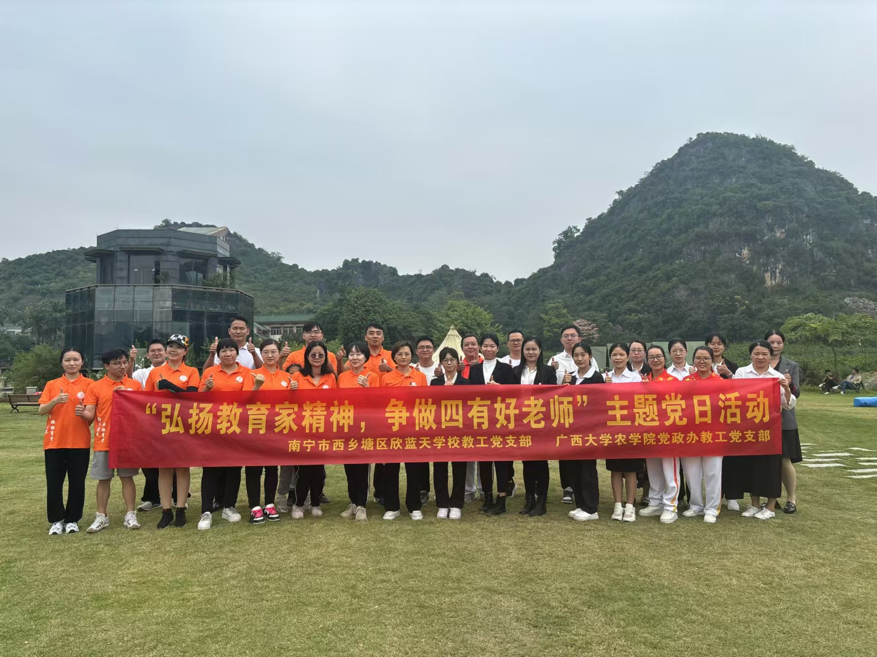 为深入学习贯彻全国教育大会精神和自治区教育大会精神,引导党员干部在实践中把握全国教育大会精神的深刻内涵,提高党员干部的思想政治觉悟,强化新时代党员干部的使命担当,增强教育使命感和责任感,提高教育教学水平,进一步推动学校、学院教育事业发展贡献力量,11月3日,我院党政办支部与南宁市西乡塘区欣蓝天学校教工党支部在南宁市卉芫花卉研学基地,开展以“弘扬教育家精神,争做四有好老师”为主题的党日活动。活动中,大家深入研读了全国教育大会及自治区教育大会精神并就如何将这些会议精神融入日常的教育教学工作中,如何提升教育教学质量,如何培养出德智体美劳全面发展的社会主义建设者和接班人,以及如何践行教育家精神,努力成为“四有”好老师等议题,展开了热烈而深入的讨论。