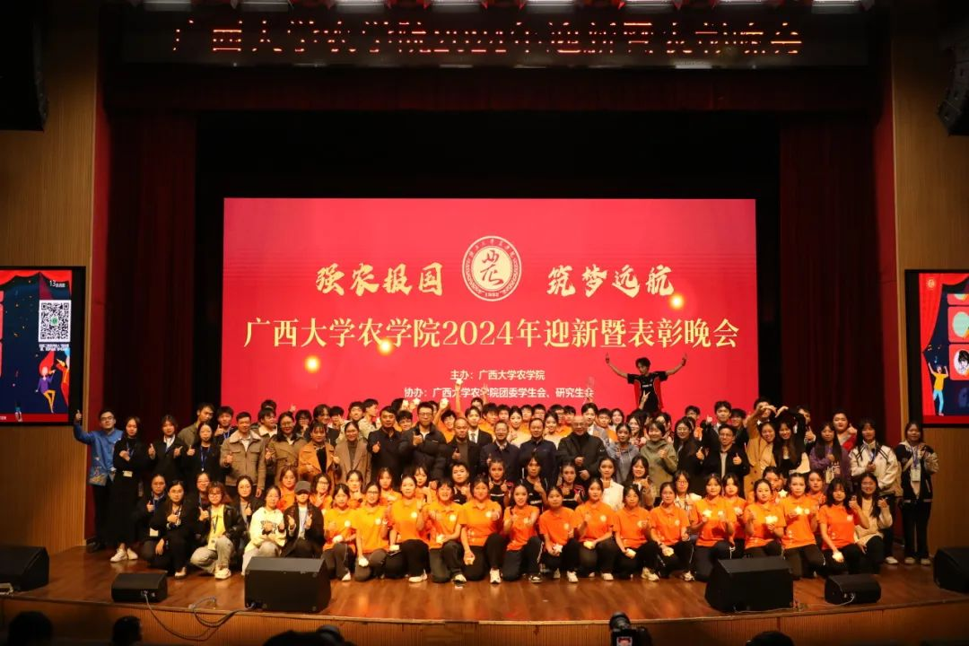 强农报国,筑梦远航。12月7日,我院2024年迎新生暨表彰晚会在大学生活动中心隆重举行。beats365亚洲版党委书记袁涛、党委副书记甘敏思、副院长韦燕燕及校友企业代表出席本次晚会。学院各系办(中心)主任、辅导员、班主任、教师代表及300余名学生参加本次晚会。
