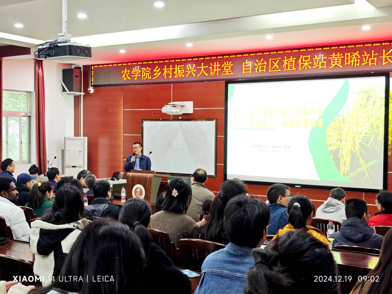 12月19日,广西壮族自治区植保站站长黄晞受邀来到我院,为师生们带来了一场题为“立足广西,着眼全局,面向未来,奋力开创新时代广西植保新篇章”的精彩专题报告。