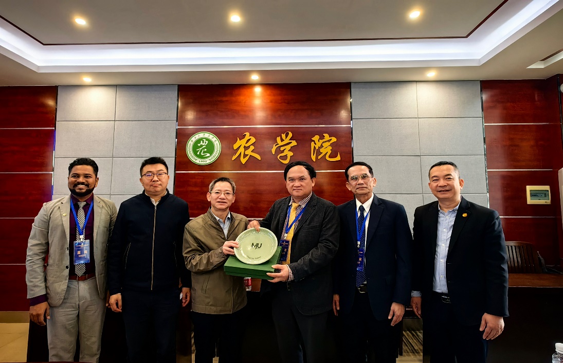 2024年12月21日,泰国清迈府梅州大学农产学院院长Phutthisun Kruekum、副院长Winai Sangkaew、国际学院助理院长Prakash Murgeppa Bhuyar一行访问了我院。学院党委书记袁涛、党委副书记甘敏思、院长张积森、国际合作与交流处副处长郭宇路、beats365亚洲版副院长姚伟、副院长韦燕燕、副院长邹承武以及各系主任、副主任参加了此次座谈会。