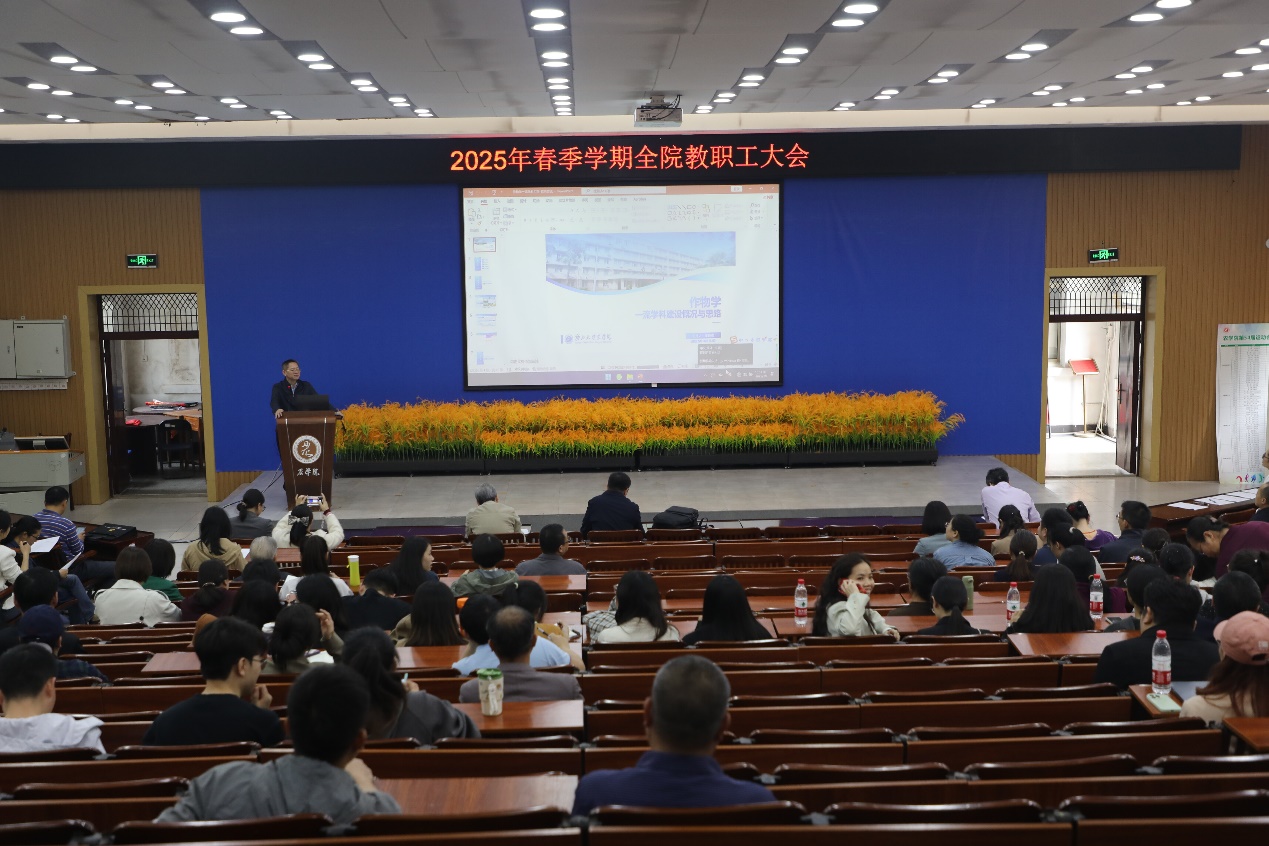 3月4日下午,我院在124教室召开2025年春季学期全院教职工大会,会议主要内容是传达学校世界一流学科(培育)建设工作会的相关精神及学院本学期工作布置。