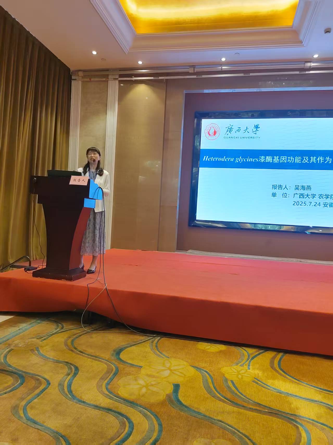 吴海燕教授做题为“Heterodera glycines漆酶基因功能及其作为防控靶标的潜力”报告