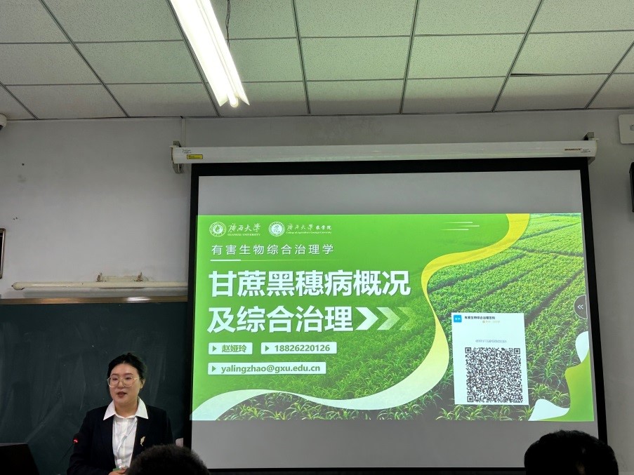 在同期举办的青年教师教学基本功交流活动中,来自全国22所农林院校的39位教师同台竞技。我院青年教师赵娅玲以《有害生物综合治理》课程的“甘蔗黑穗病概况及综合治理”节段进行教学展示,凭借扎实的专业功底、清晰的教学逻辑和生动的授课风格,斩获一等奖,充分展现了我院青年教师的教学素养与育人能力。