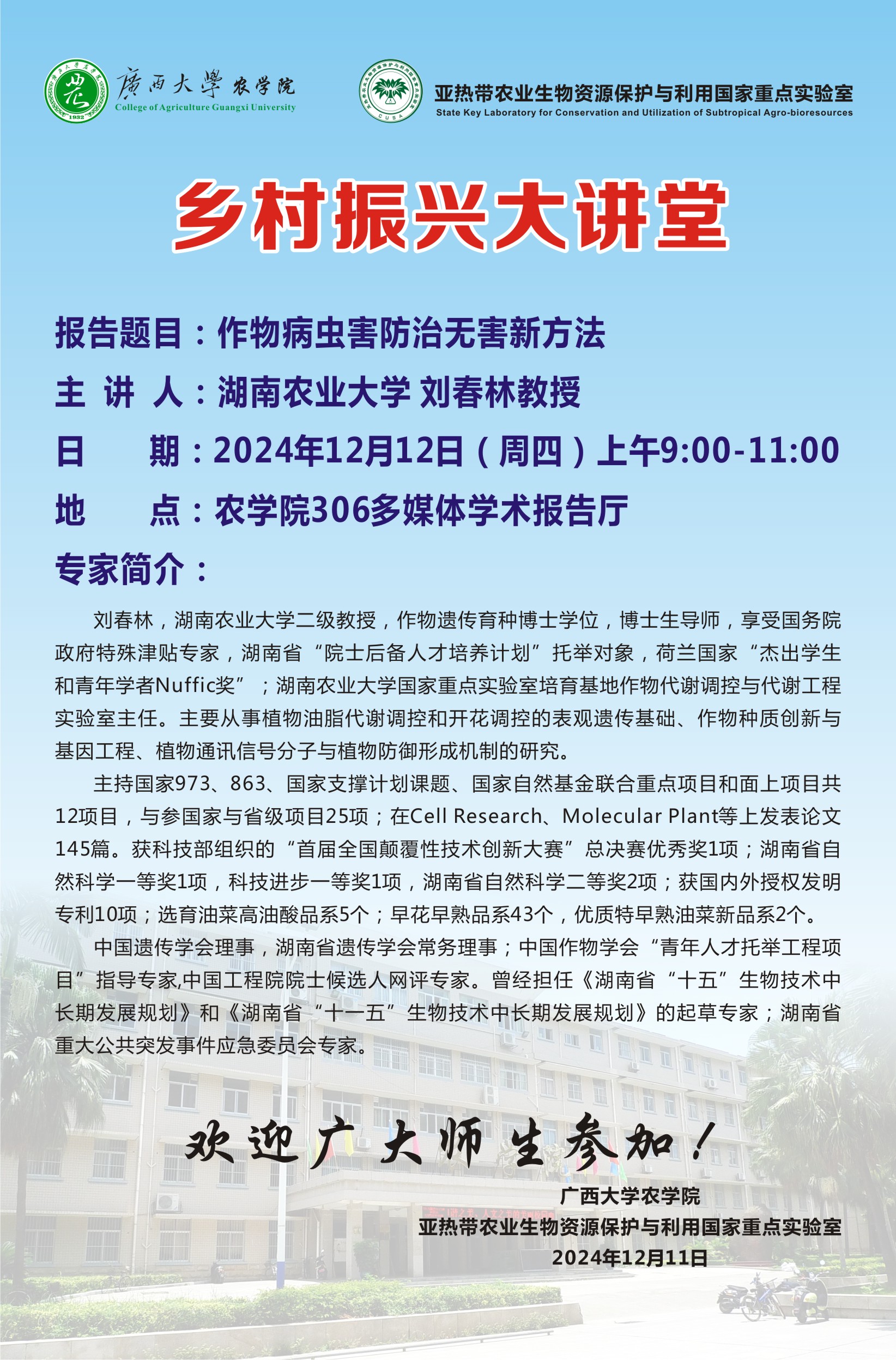 乡村振兴大讲堂-作物病虫害防治无害新方法-刘春林教授